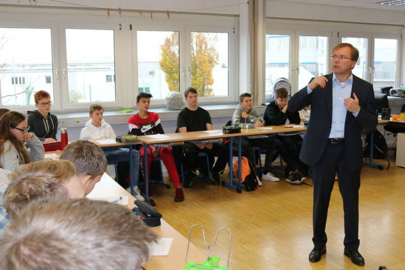 Naturgemäß interessierten sich die Neuntklässler besonders für Bildungspolitik und die Frage, wie es für sie nach der Schulzeit weitergeht. „Heutzutage strebt fast jeder ein Studium an. Dabei gibt es auch viele andere spannende Berufsfelder“, erklärte Paul Nemeth dazu. „Ich denke da an eine kaufmännische Ausbildung oder den Einstieg in einen handwerklichen Beruf. Diese Berufe sind in der heutigen Zeit wichtiger denn je und bieten oft auch Möglichkeit für einen Aufstieg innerhalb des Betriebs oder innerhalb der Selbständigkeit“, so Nemeth, der selbst eine Ausbildung zum Industriekaufmann absolvierte. Der Böblinger CDU-Landtagsabgeordnete machte auch deutlich, warum er jungen Leuten dazu rät, nach der Schule Alternativen zu einem Studium ins Auge zu fassen. „Nutzt es, dass man bei uns in Deutschland so vielfältige Möglichkeiten hat. Das ist in vielen Ländern anders. In Spanien liegt die Jugendarbeitslosigkeit teils bei 30 Prozent. Dort gibt es viel weniger Chancen für junge Leute als bei uns“, sagte Nemeth und gab den Schülerinnen und Schülern eine klare Botschaft mit auf den Weg: „Lest Zeitung, informiert euch, es lohnt sich!“ Großes Interesse hatten die Neuntklässler auch am Klimaschutz. Da traf es sich gut, dass sie mit ihrem Wahlkreisabgeordneten Paul Nemeth den energiepolitischen Sprecher der CDU-Landtagsfraktion zu Gast hatten. „Jeder hat zu Hause die Möglichkeit, selbst etwas für ein besseres Klima zu tun. Beispielsweise was das Dämmen oder Heizen angeht“, erklärte Paul Nemeth dann auch gleich. Denn in Sachen Energiewende werde zwar oft über Strom geredet, am meisten CO2 werde allerdings beim Heizen ausgestoßen. „Deshalb liegen hier für nahezu jeden von uns große Chancen, etwas für den Klimaschutz zu tun“, machte Nemeth deutlich. Nemeth zeigte dann auch beispielhaft auf, wie Politiker die Menschen zu einem Tausch ihrer Heizungsanlage animieren könnten. „Um die Bürger zur Umstellung auf klimafreundlichere Modelle beim Heizen zu bewegen, muss man ihnen staatliche Förderungen in Aussicht stellen. Man darf die Eigentümer hier nicht alleine lassen“. Den Weg der Grünen für ein besseres Klima primär auf Verbote zu setzen, hält Nemeth für falsch. „Die CDU will dem Klimawandel mit Innovation und neuen Technologien begegnen. Mit Verboten zu arbeiten, halten wir für kontraproduktiv. Man darf die Leute nicht in Form eines Verbots des Verbrennungsmotors bis 2030 vor vollendete Tatsachen stellen“. Die 16-jährige schwedische Umweltaktivistin Greta Thunberg bezeichnete Paul Nemeth als ein „Phänomen“. Sie habe auf dem Weg zu einem besseren Klimaschutz schon einige wichtige Etappen erreicht. In manchen Bereichen überziehe sie allerdings. „Ihre Behauptung, ein fehlendes Bemühen seitens der Staats- und Regierungschefs beim Klimaschutz haben ihre Kindheit und ihre Träume gestohlen, ist schlichtweg nicht korrekt“, sagte der Böblinger CDU-Landtagsabgeordnete. Das Internet und die digitale Welt sind für die Jugendlichen von heute von großer Bedeutung. Das ist bei den Neuntklässlern der FES nicht anders. Und deshalb wollten Sie von Paul Nemeth auch wissen, was die Politik derzeit für ein überall funktionierendes Netz tue. Die Antwort dürfte ganz in ihrem Sinne gewesen sein. Denn der CDU-Politiker machte deutlich, dass „das Land rund eine Milliarde Euro in den Ausbau der Netze steckt. Über diese hohen Investitionen wollen wir erreichen, dass es in Baden-Württemberg bis zum Jahr 2025 ein flächendeckendes Glasfaserkabel gibt“, sagte Nemeth. Mit der 9a am „Tag der Freien Schulen“ eine Stunde lang intensiv diskutiert hatte Paul Nemeth auf Einladung von FES-Lehrer Henrik Mohn. „Uns ist es wichtig, unsere Schüler an politische Themen heranzuführen. Bei der Erarbeitung der Fragen an Paul Nemeth waren im Vorfeld alle mit großem Interesse dabei“, berichtete Mohn. Die Freie Evangelische Schule mit ihren derzeit knapp 50 Lehrern feiert in diesem Jahr ihr 20jähriges Bestehen. Zusammen bieten die Standorte in Böblingen und Holzgerlingen mittlerweile Platz für rund 450 Schüler. „Unsere staatlich anerkannte Schule in freier Trägerschaft, in der man sowohl den Hauptschul- als auch den Realschulabschluss machen kann, erlebt in Sachen Anmeldungen derzeit einen Boom. Vielleicht liegt das daran, dass wir in einer immer hektischer werdenden Welt versuchen eine persönliche Bindung zu den Schülern aufzubauen und dabei christliche Werte zu vermitteln“, sagte Henrik Mohn.