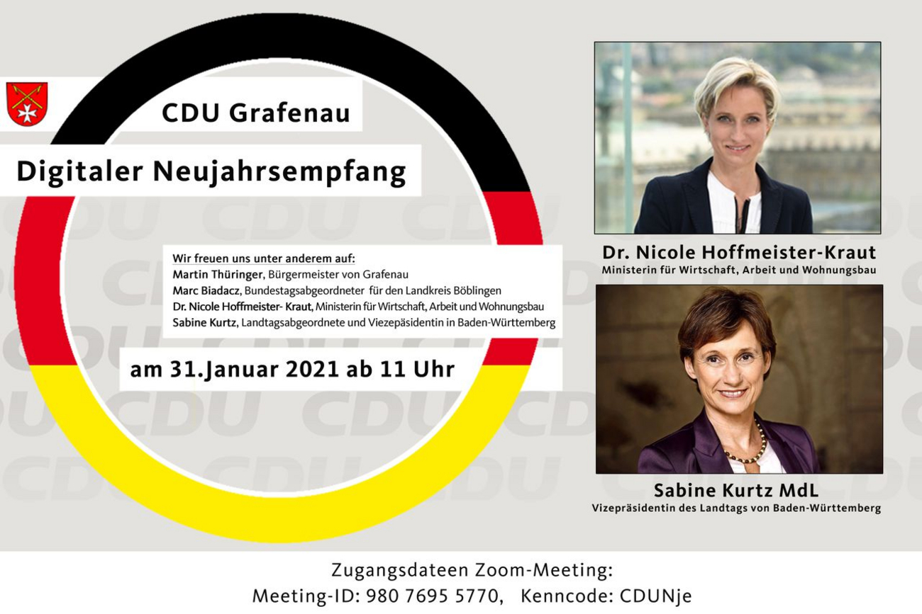 Neujahrsempfang der CDU Grafenau mit Landtagsvizepräsidentin Sabine Kurtz: Sehen Sie hier die Rede von Wirtschaftsministerin Dr. Nicole Hoffmeister-Kraut zum Neujahrsempfang der CDU Grafenau!