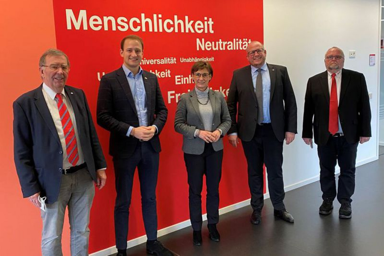 „In vielen Sonntagsreden wird die Anerkennung für die Arbeit des Roten Kreuz ausgedrückt“, hebt Michael Steindorfner gleich zu Beginn des Gesprächs hervor, „doch gerade für unsere Ehrenamtliches ist es wichtig, dass diese Wertschätzung auch konkret wird.“ Gerade während der Corona-Pandemie unterstützen Ehrenamtliche die Beschäftigten im Gesundheitsdienst beim Testen und Impfen. Sabine Kurtz, Landtagsabgeordnete für den Wahlkreis Leonberg und Staatssekretärin im Ministerium für Ländlichen Raum, nimmt diesen Punkt auf: „In unserem Koalitionsvertrag haben wir vereinbart, in dieser Legislaturperiode endlich eine Ehrenamtskarte einzuführen. Seit vielen Jahren ist dies ein Wunsch aus den Rettungsorganisationen. Als CDU drängen wir darauf, dass dieser wichtige Schritt für die Wertschätzung des Ehrenamts zeitnah umgesetzt wird.“ Wichtig ist dem DRK ferner der Neubau und die Sanierung von Rettungswachen. „Ganz akut in unserem Landkreis ist der Neubau der Rettungswache in Herrenberg“, erklärt Geschäftsführer Wolfgang Hesl den Abgeordneten, „alleine können wir den Bau jedoch nicht stemmen. Um die Hilfsfristen einhalten und verkürzen zu können, sind wir auf die finanzielle Unterstützung des Landes angewiesen.“