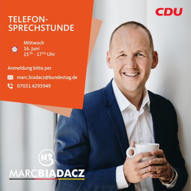 Der CDU-Landtagsabgeordnete Matthias Miller bietet am kommenden Freitag, den 28. Mai 2021, von 10:00 bis 11:00 Uhr eine Telefonsprechstunde für die Bürgerinnen und Bürger aus dem Landtagswahlkreis Böblingen – Sindelfingen – Schönbuch an.