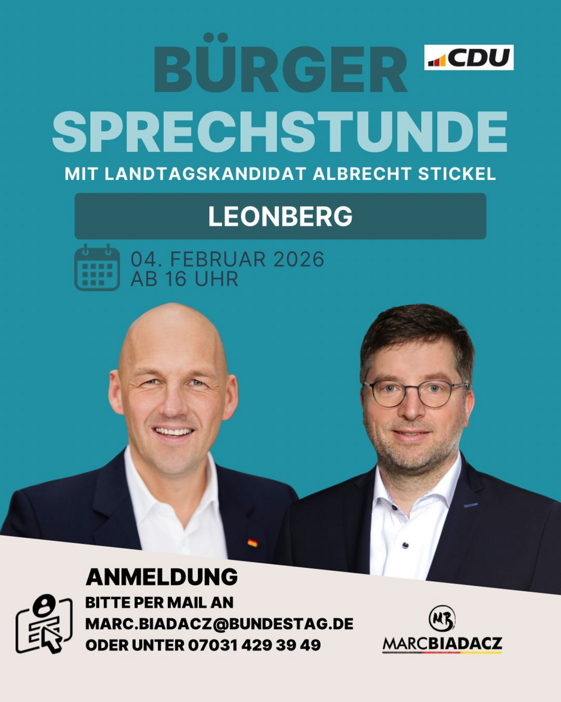 Anmeldung bitte per Mail an: marc.biadacz@bundestag.de oder unter 07031 4293949
