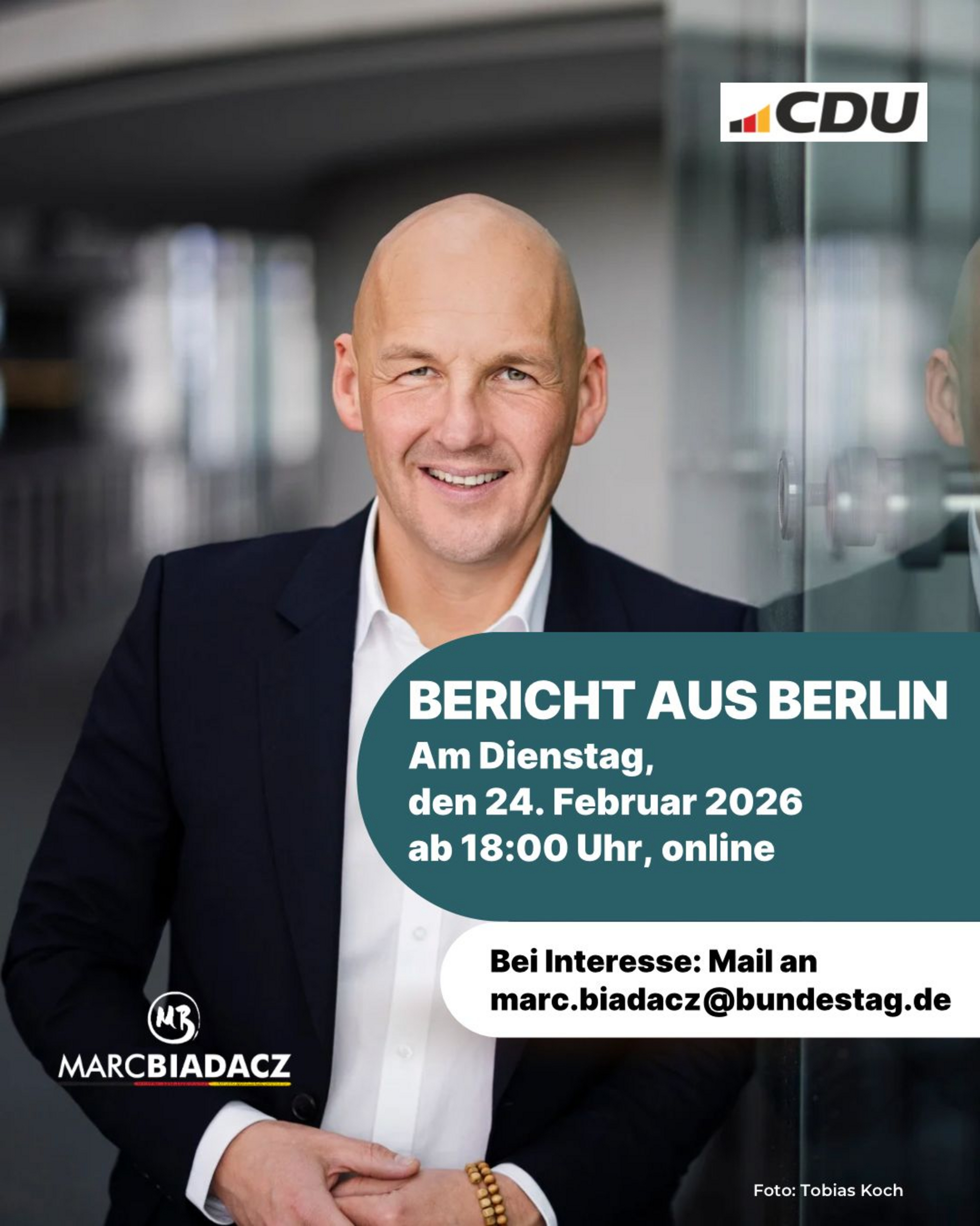 Seit mehreren Jahren lädt der CDU-Bundestagsabgeordnete Marc Biadacz in Sitzungswochen des Deutschen Bundestages zu seinem „Bericht aus Berlin“ ein. Der direktgewählte Bundestagsabgeordnete für den Landkreis Böblingen berichtet in diesem Format per Videokonferenz über das aktuelle politische Geschehen in Berlin.