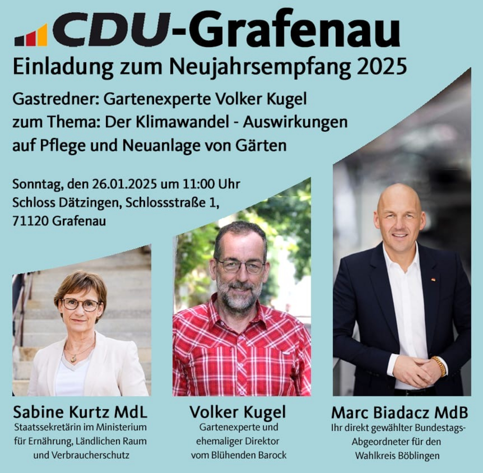 Neujahrsempfang der CDU Grafenau mit unserem direkt gewählten Marc Biadacz und dem Gastredner Volker Kugel zum Thema "Der Klimawandel - Auswirkungen auf Pflege und Neuanlagen von Gärten".